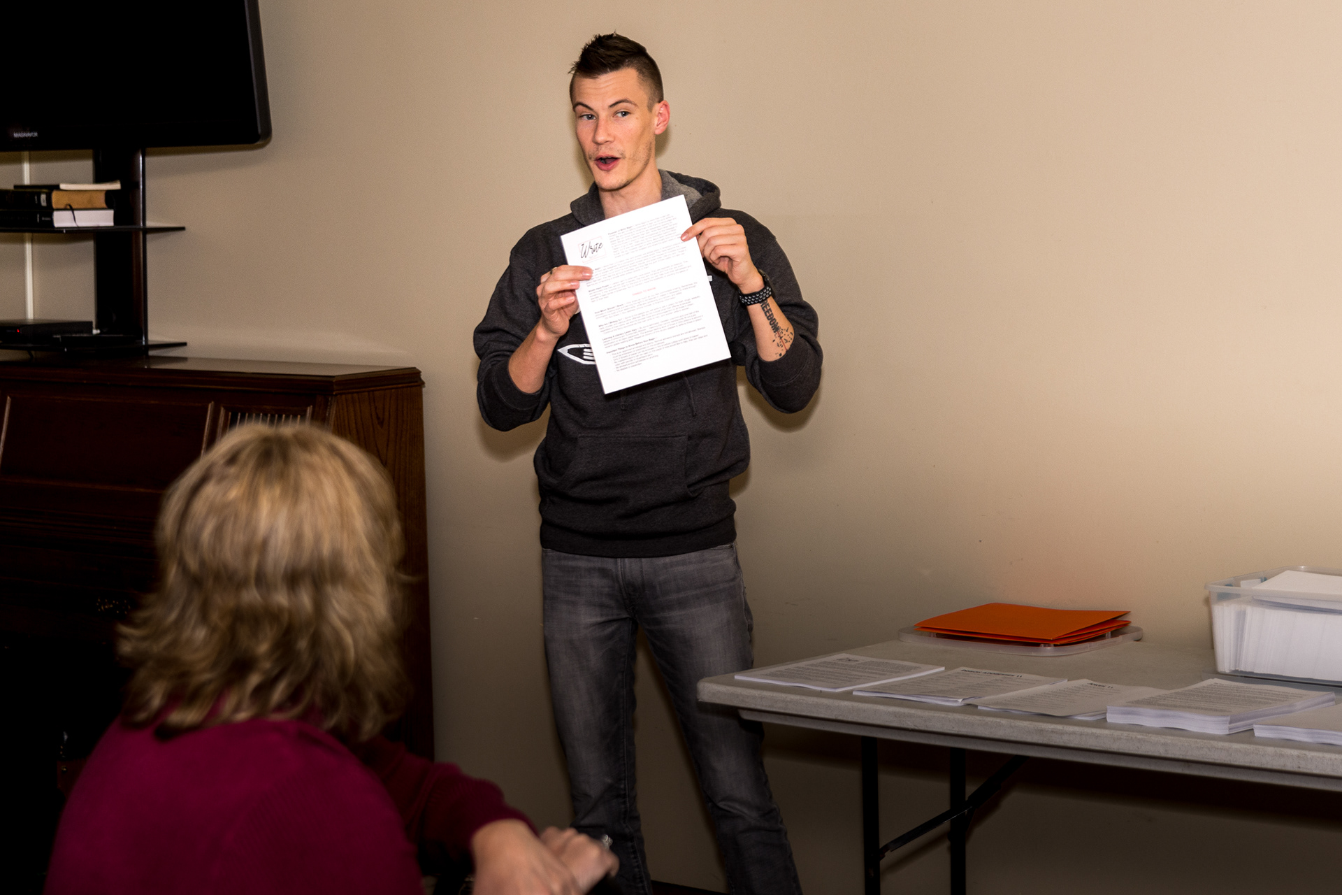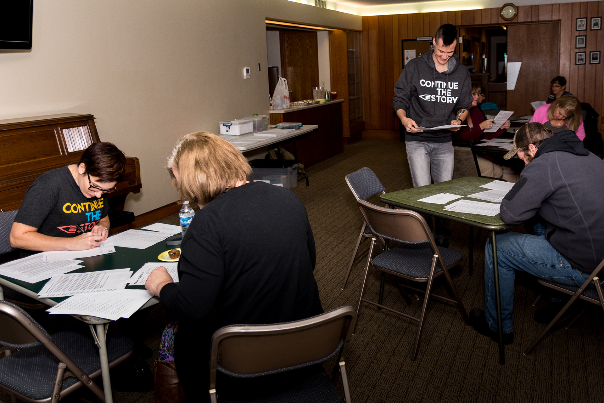 My wife became involved with a local non-profit that reaches out to people in the prison system. They hosted a write night at the local church where volunteers came together to write personal messages of hope to be mailed to prisoners. I was asked to bring along the camera and document the event.